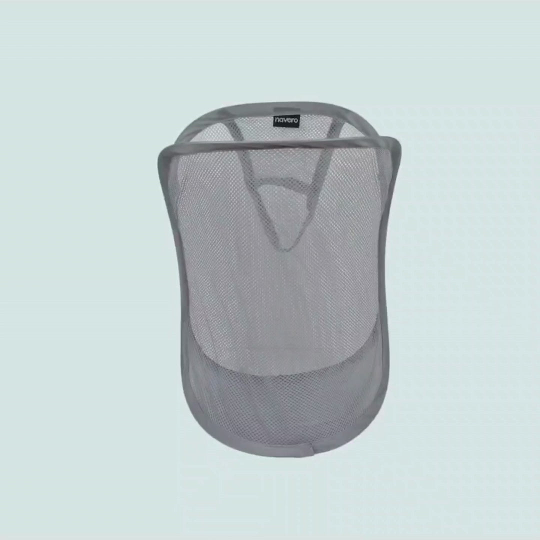 In an upright position, hold each side of the basket and twist inversely. Secure with elastic strap.